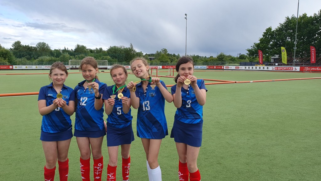 Kelmės sporto centro jaunosios riedulininkės iškovojo garbingą 3 vietą. A. Bužinskaitė, U. Bracevičiūtė, G. Jarašiūtė, A. Stulginskytė, A. Savickytė. Trenerė Reda Zubavičienė.